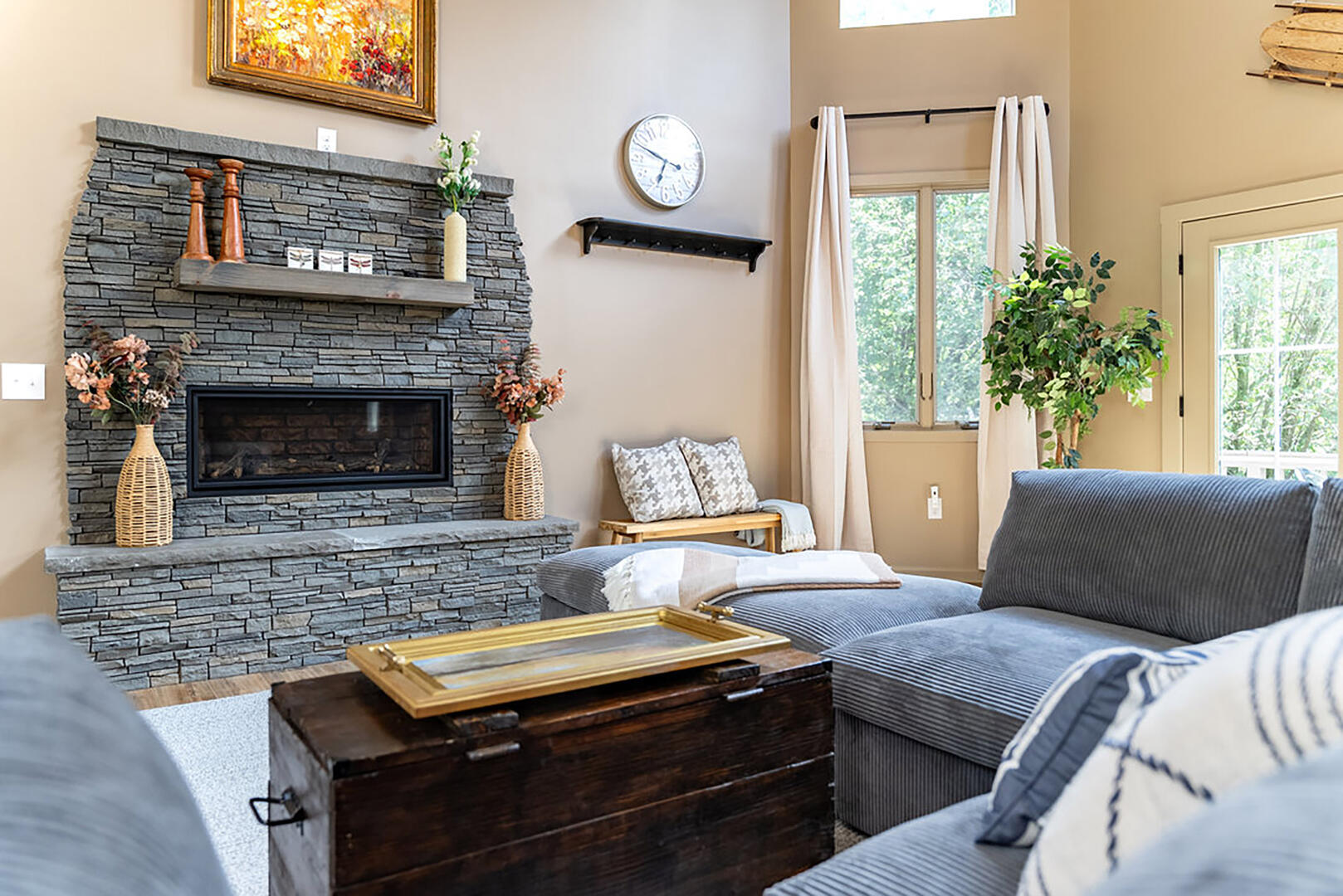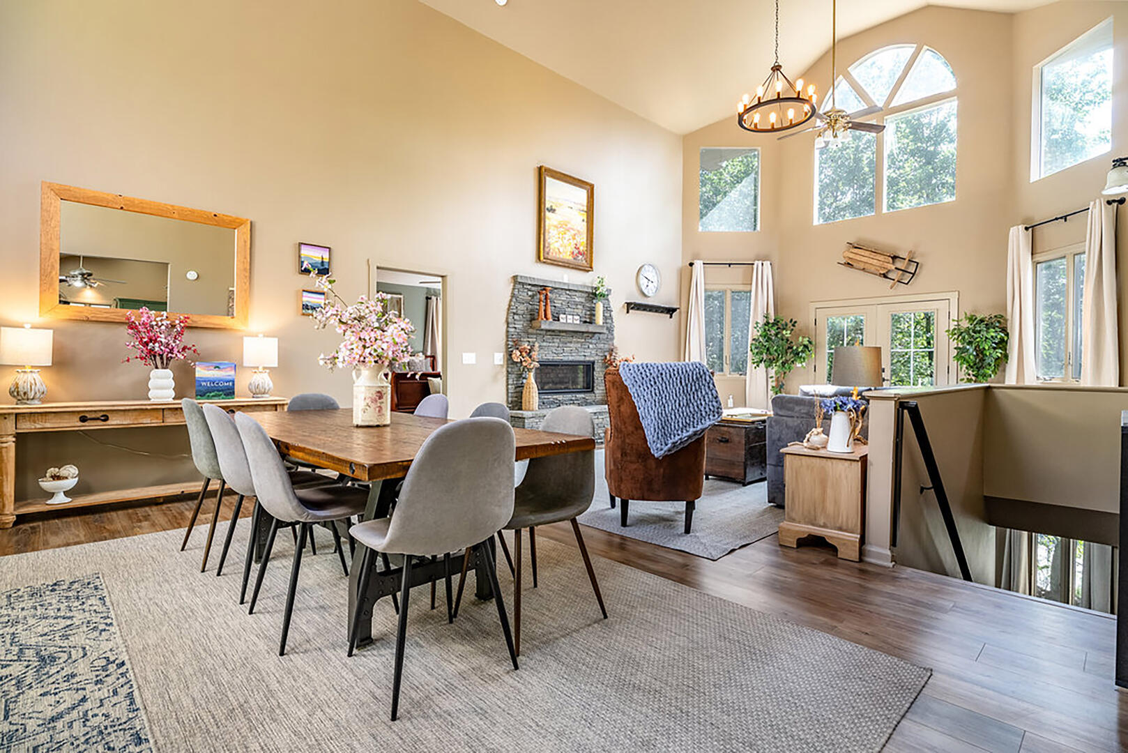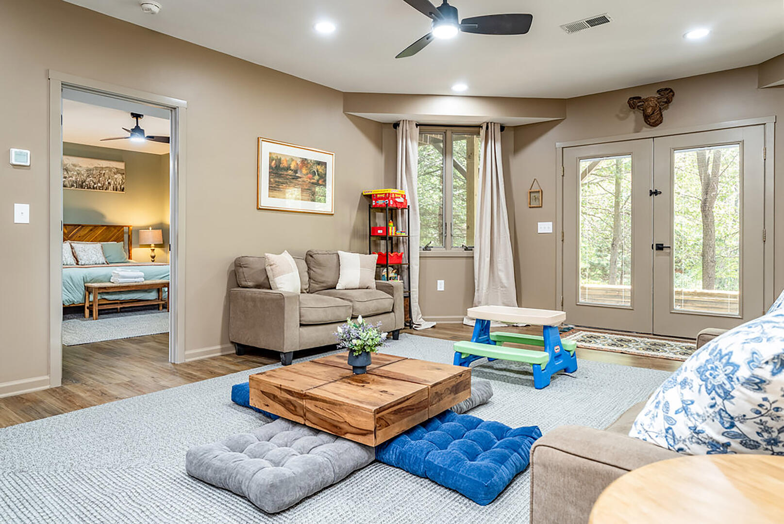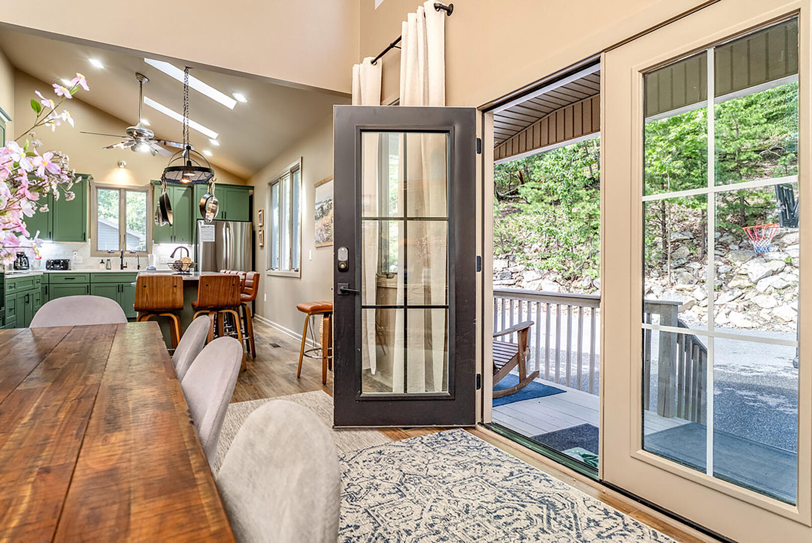 Welcome to your serene escape, nestled in nature and designed for true relaxation. This peaceful retreat is a sanctuary from the bustle of daily life! The main living room is intentionally TV-free, encouraging meaningful connection, quiet reflection, or simply soaking in the gentle whispers of the surrounding forest. It's the perfect space to unplug and embrace the calm.