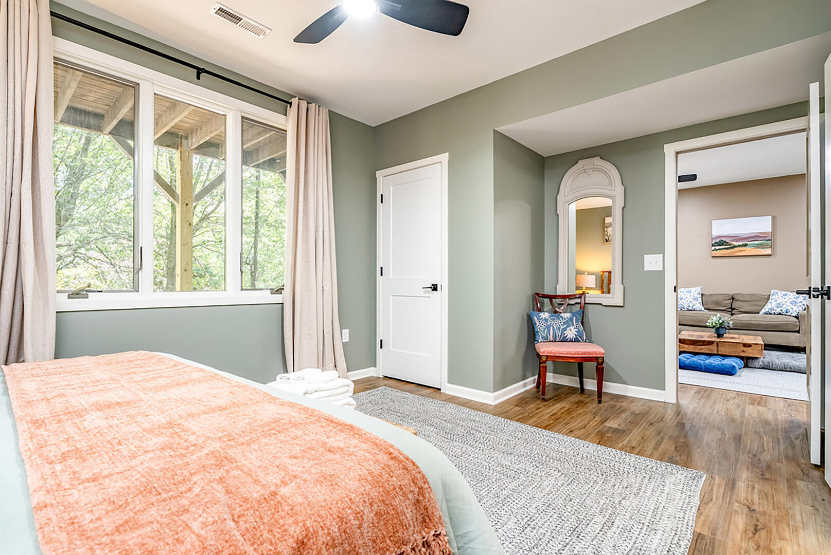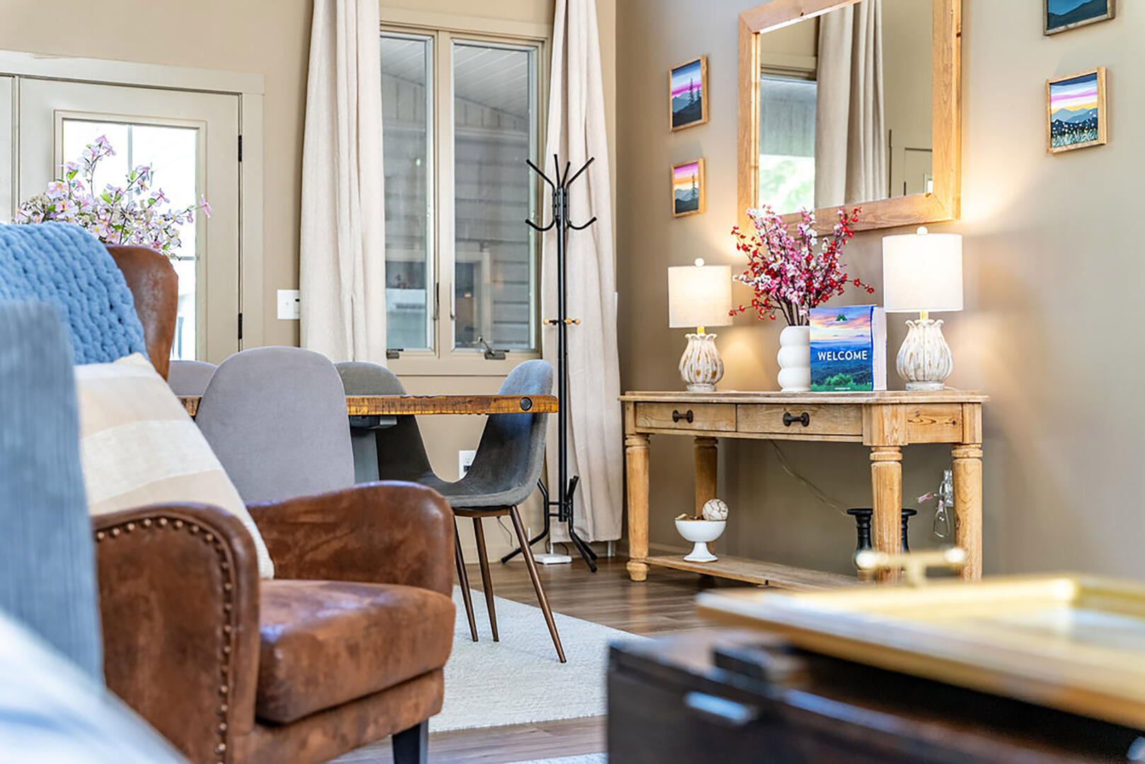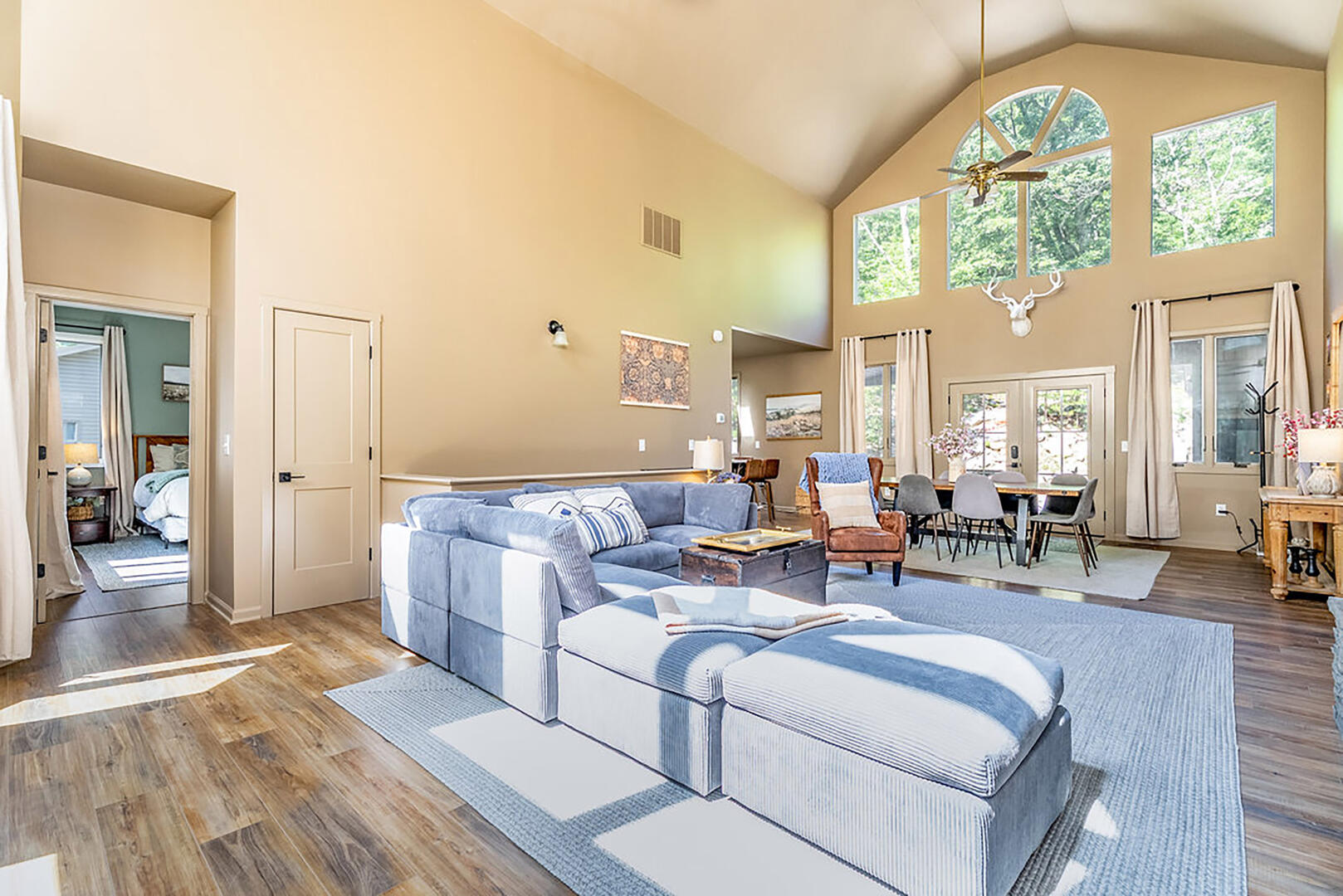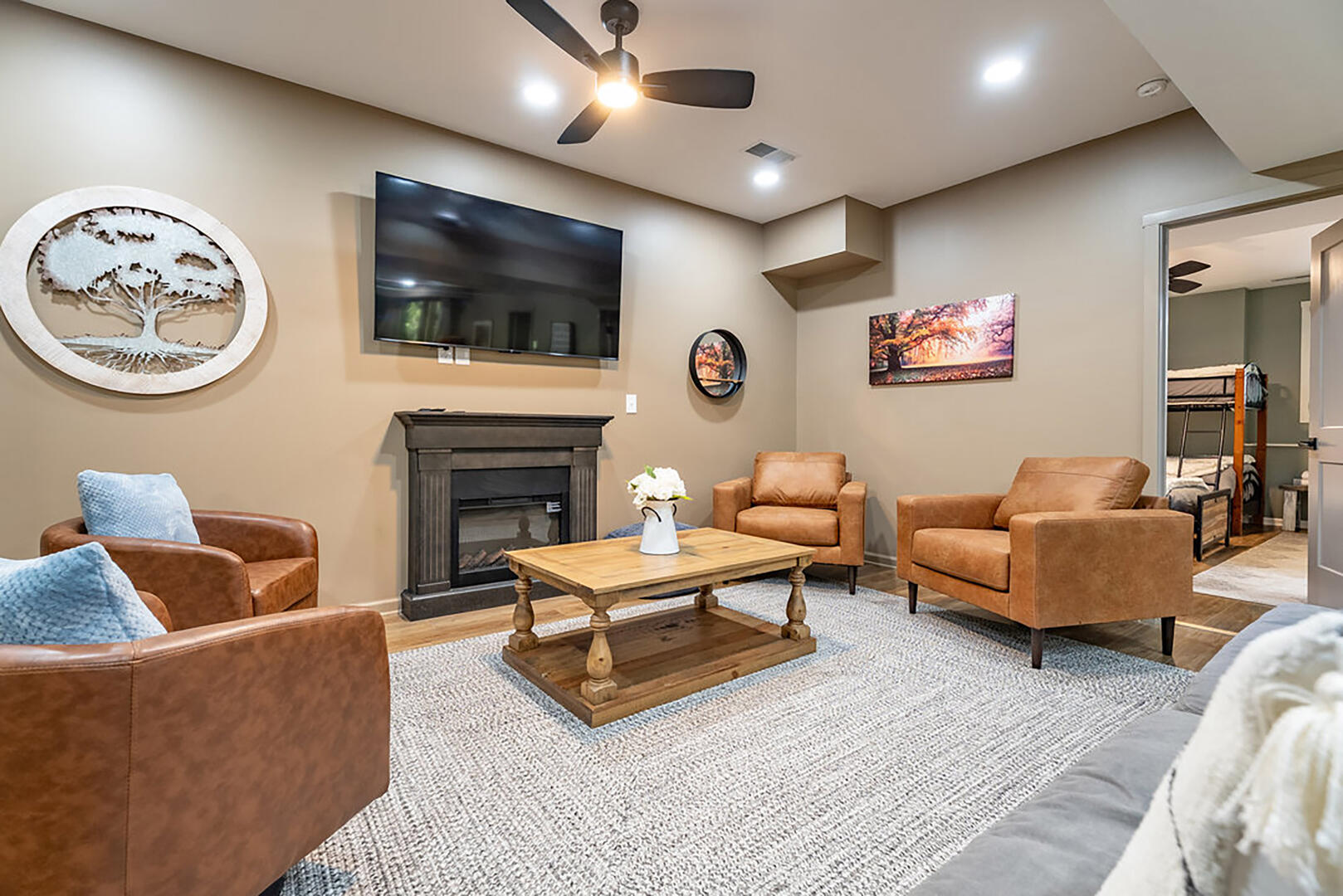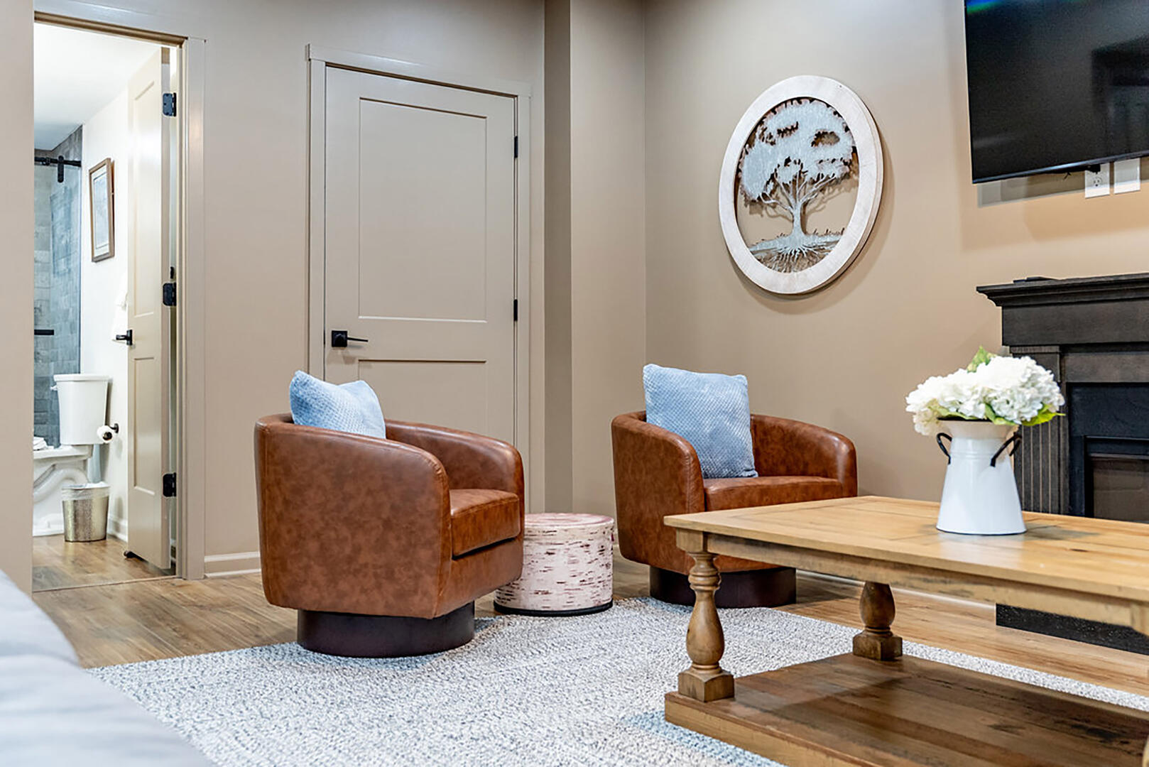 Welcome to your serene escape, nestled in nature and designed for true relaxation. This peaceful retreat is a sanctuary from the bustle of daily life! The main living room is intentionally TV-free, encouraging meaningful connection, quiet reflection, or simply soaking in the gentle whispers of the surrounding forest. It's the perfect space to unplug and embrace the calm.