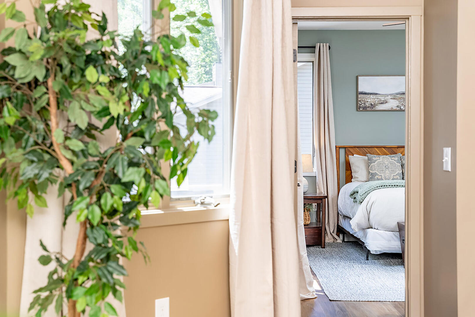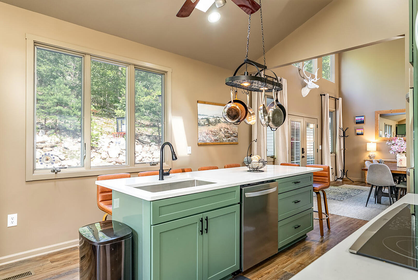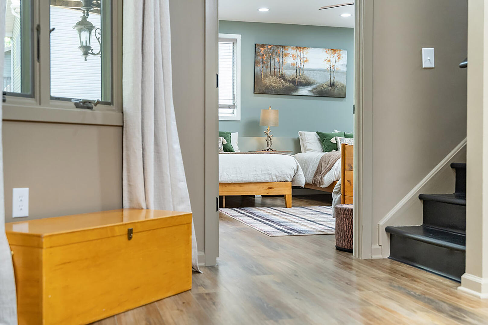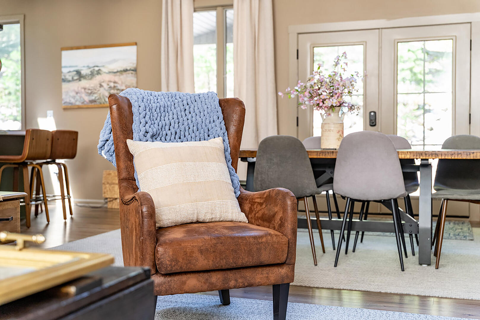 Welcome to your serene escape, nestled in nature and designed for true relaxation. This peaceful retreat is a sanctuary from the bustle of daily life! The main living room is intentionally TV-free, encouraging meaningful connection, quiet reflection, or simply soaking in the gentle whispers of the surrounding forest. It's the perfect space to unplug and embrace the calm.