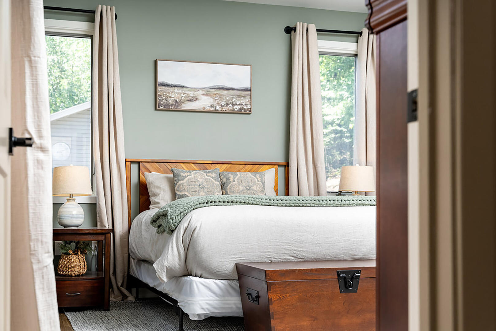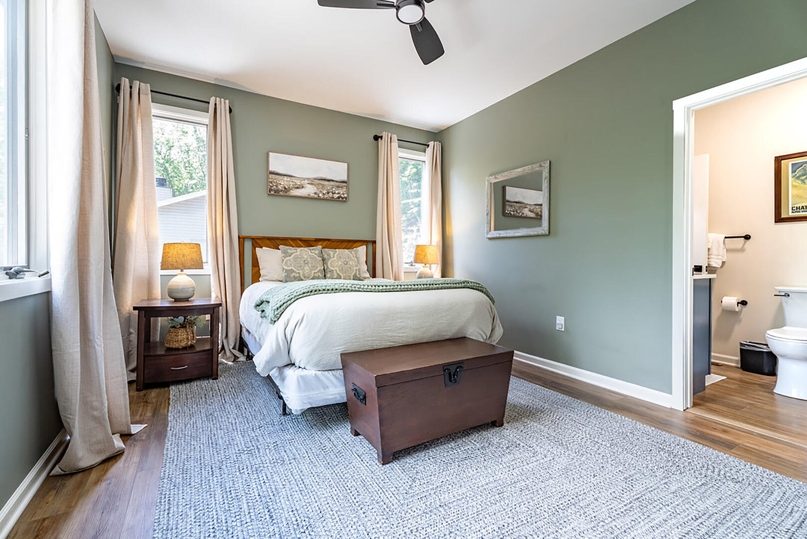 Bedroom 1: Main level, queen bed, ensuite bath