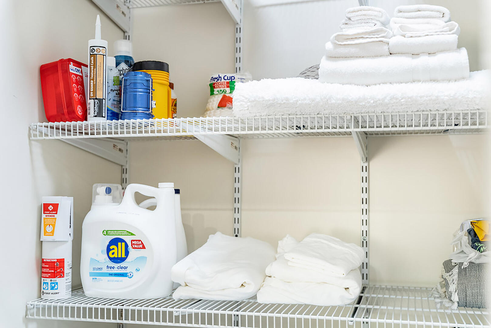 All linens for bedding, towels and washcloths are provided. Paper goods such as toilet paper and paper towels are provided. The kitchen has dishes, cups, utensils, cookware, microwave, and coffee maker. Simply bring your clothes, toiletries and food. Washer and dryer are available.