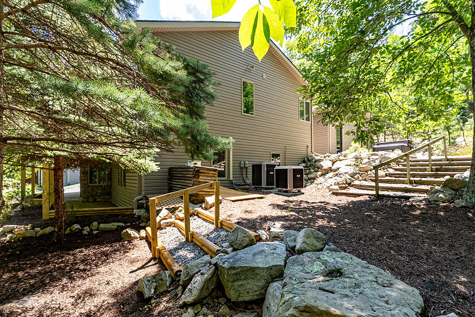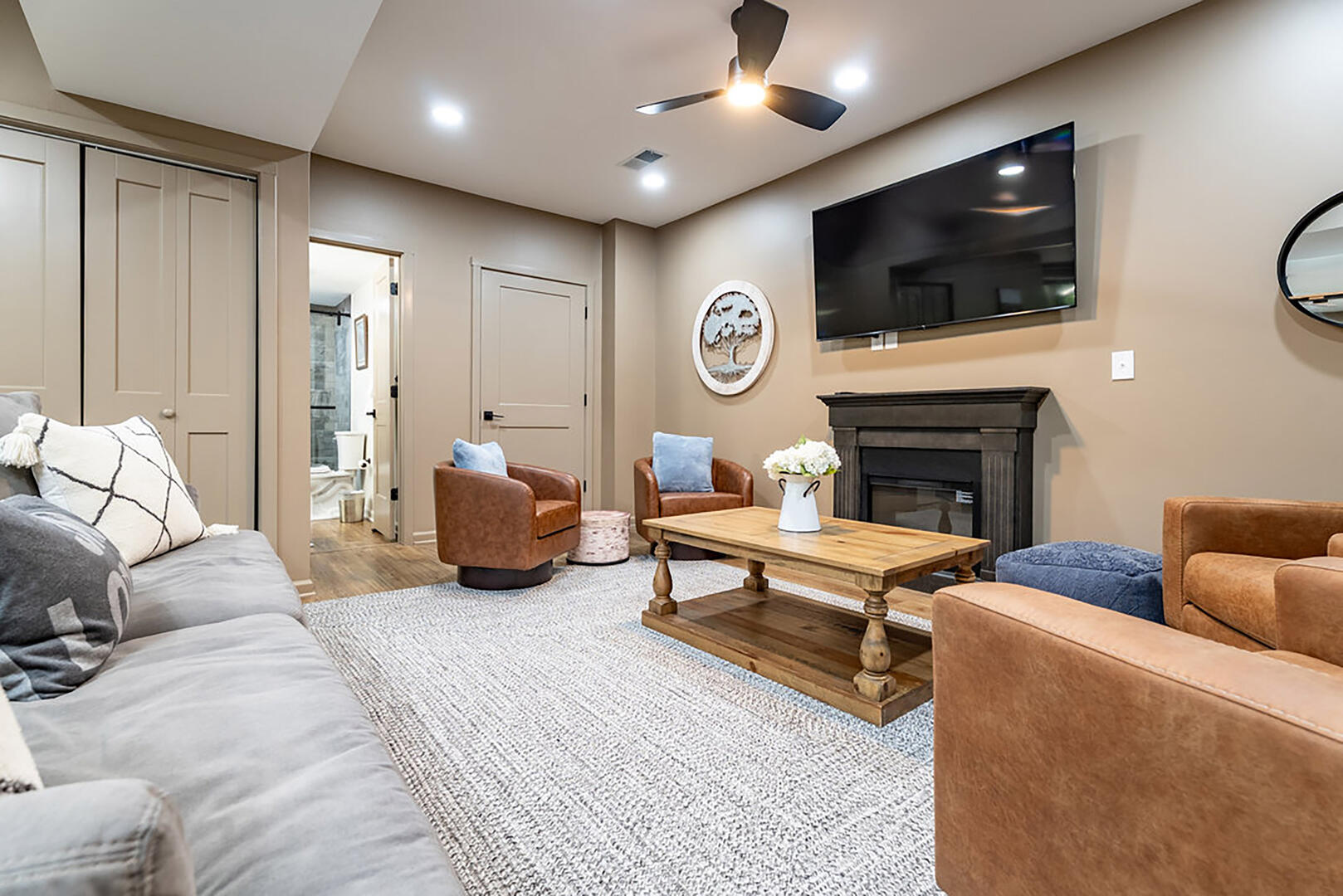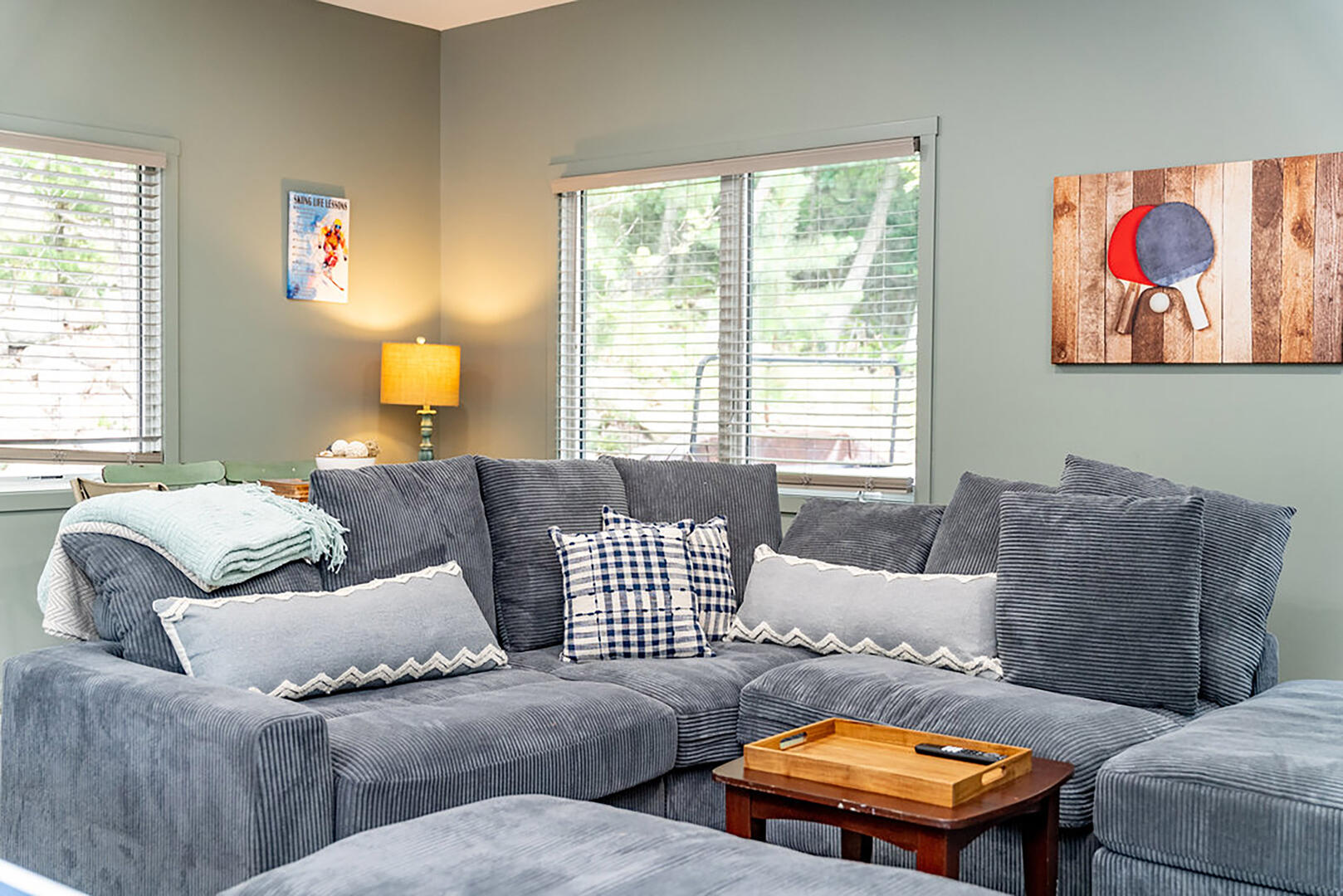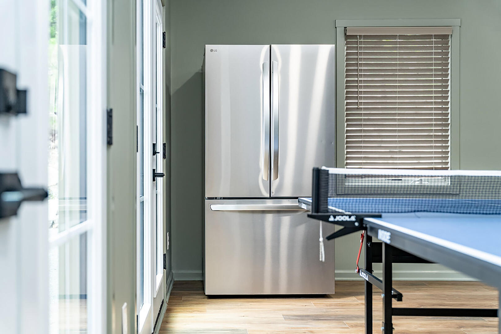 For cozy entertainment, head downstairs to the basement living room where a large TV invites laid-back movie nights. Even more excitement awaits in the separate Rec Room, complete with a very large TV—perfect for epic game days or fun-filled movie marathons—and a ping pong table for friendly competition. Step into the hot tub and melt into forest views as you soak under the sky. Whether it's morning mist or a canopy of stars, this is your moment to relax deeply and breathe freely.