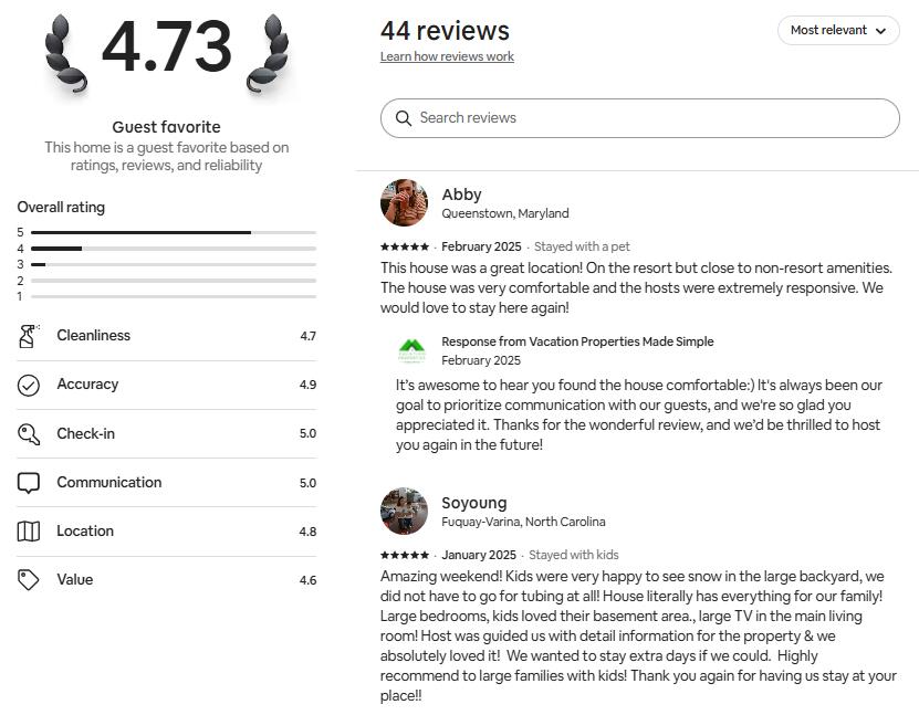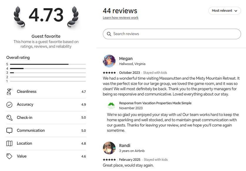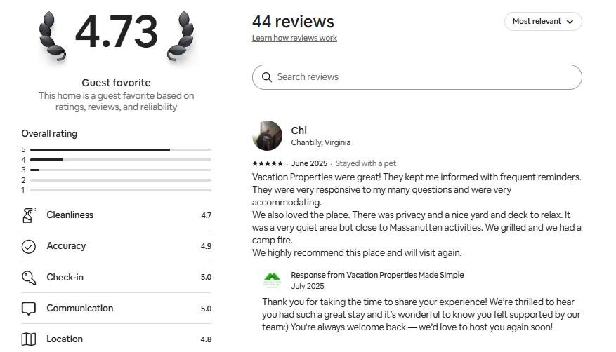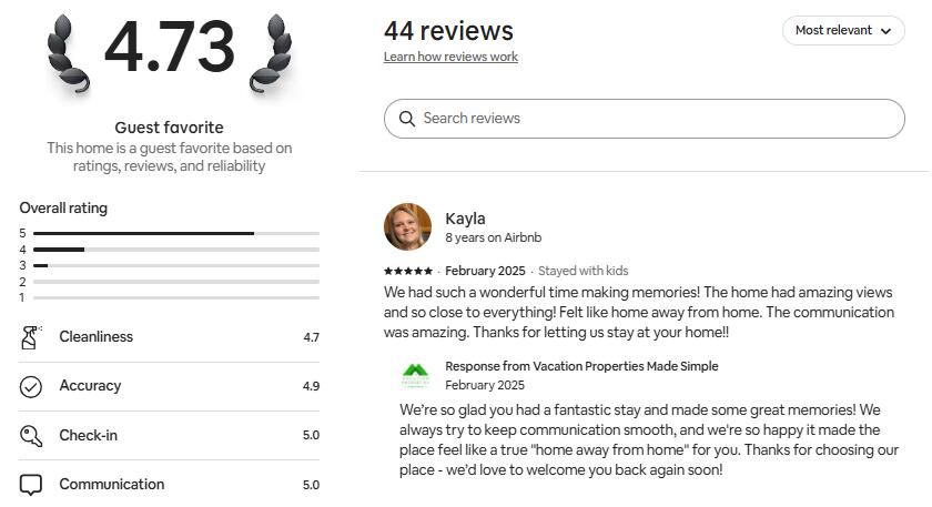 This vacation home recently joined TripForth's host portfolio (Sept 2025) after years of welcoming happy guests through VPMS. While the listing may look & new, it's an established rental with a strong history of 5-star reviews. We've highlighted past guest feedback in the photo carousel and look forward to earning even more 5-star stays.